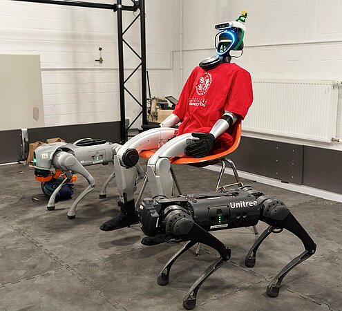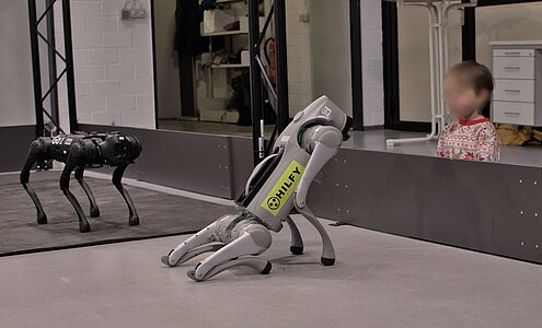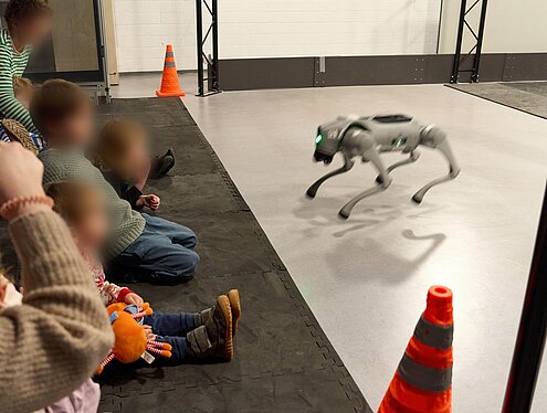 On 9th of December 2025, we held a children's Christmas party at the Test Field for Autonomous Systems. Children up to primary school age were able to watch our humanoid and dog robots waving, jumping, sit up and beg ... with mandarins, biscuits and juice.